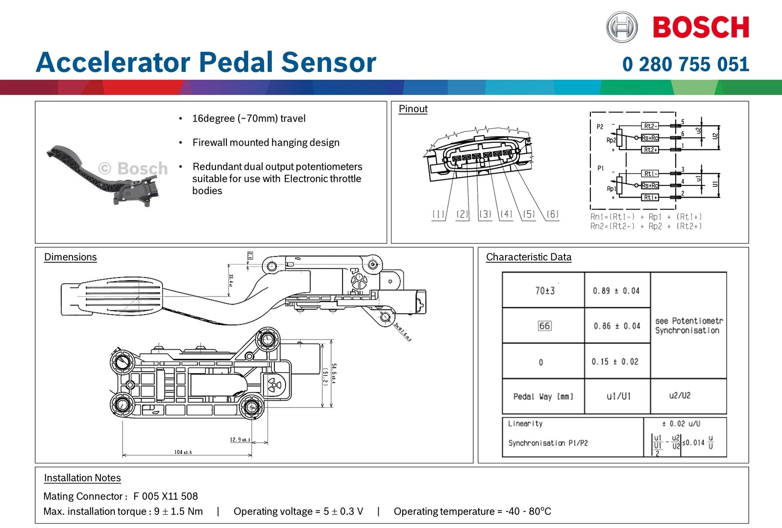 Bosch tulipeltikiinnitteinen kaasupedaali sähköisen kaasuläpän kaveriksi.
